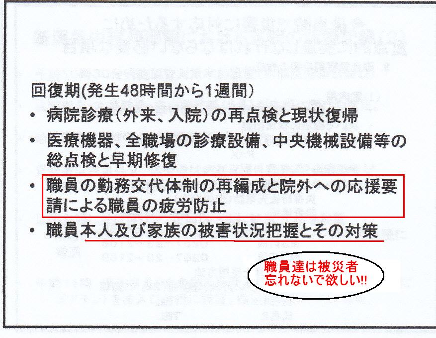 で、当日、長野でしたから地震直後から一生懸命帰ってきたのですが、渋滞が酷く、病院に着いたのは18時頃でして。。。休日の当番組や先ほどしゃべらせていただいた整形外科の津吉Drなどが、たまたま地震直後に院内にいて、もうその頃は戦闘状態だったわけなんですね。申し訳ないから、院長室にこっそりと最初からいたふりをして。。(笑)