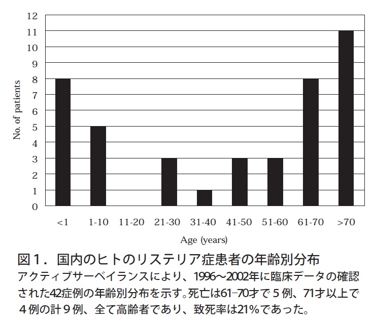 42症例のうち9名の患者が死亡しており、全て60歳以上であった。国内のリステリア症の致死率は21%である。
